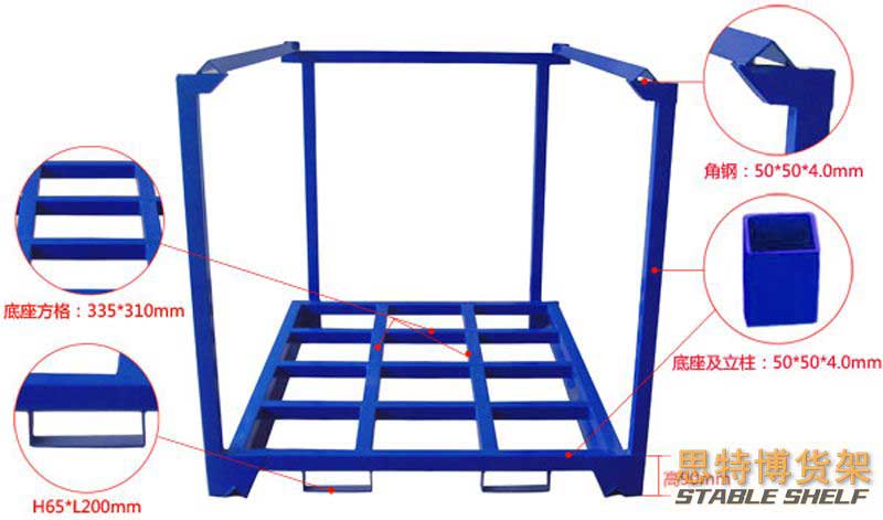 堆垛架,可相互堆3到4層,形成立體存儲模式,無需借助貨架、倉儲籠和托盤等設(shè)備,適合用在租賃倉庫、低矮的老式倉庫或車間暫存區(qū)等不適合投資貨架的區(qū)域。