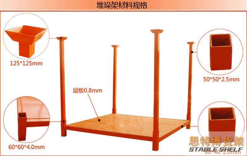 堆垛架,可相互堆3到4層,形成立體存儲模式,無需借助貨架、倉儲籠和托盤等設備,適合用在租賃倉庫、低矮的老式倉庫或車間暫存區(qū)等不適合投資貨架的區(qū)域。