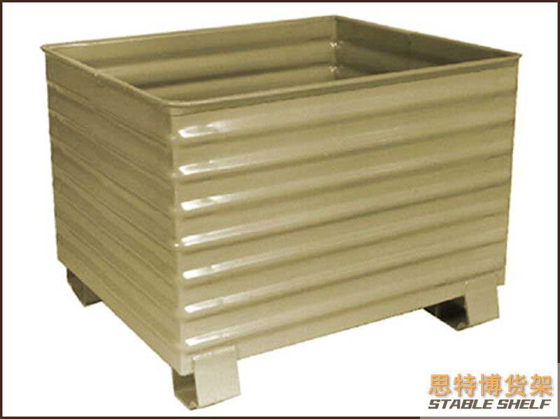 鋼制料箱結(jié)構(gòu)形式多樣,使用便捷靈活,承載能力強(qiáng)。料箱通??苫ハ喽讯?,也可配合叉車在區(qū)域能流動,亦可在底部安裝腳輪,還可以配合航吊使其起升、移位、下落。