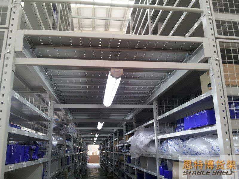 閣樓貨架系統(tǒng),通常利用中型擱板式貨架或重型擱板式貨架作為主體支撐加上樓面板(根據(jù)貨架單元的總負(fù)載重量來(lái)決定使用何種貨架),樓面板通常使用冷軋型鋼樓板、花紋鋼樓板或鋼格柵樓板。