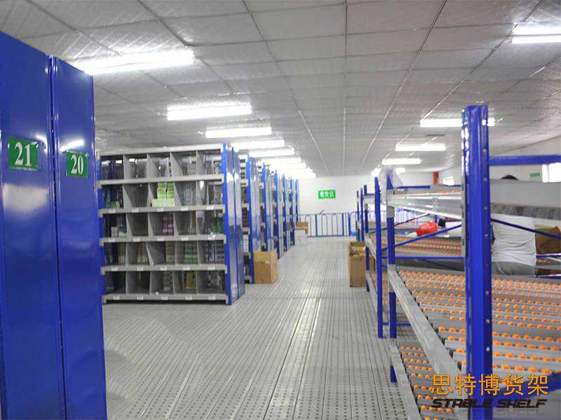 閣樓貨架系統(tǒng),通常利用中型擱板式貨架或重型擱板式貨架作為主體支撐加上樓面板(根據(jù)貨架單元的總負載重量來決定使用何種貨架),樓面板通常使用冷軋型鋼樓板、花紋鋼樓板或鋼格柵樓板。
