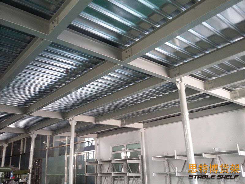 閣樓貨架系統(tǒng),通常利用中型擱板式貨架或重型擱板式貨架作為主體支撐加上樓面板(根據(jù)貨架單元的總負載重量來決定使用何種貨架),樓面板通常使用冷軋型鋼樓板、花紋鋼樓板或鋼格柵樓板。