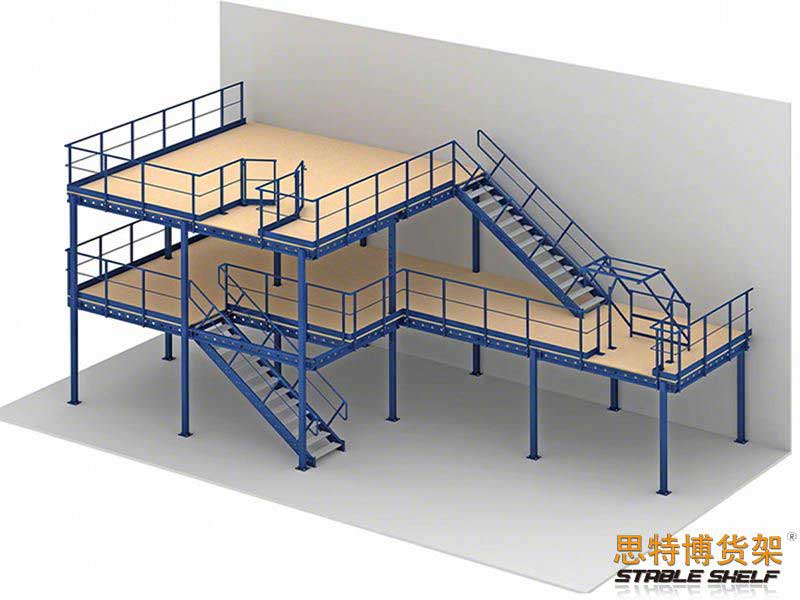 閣樓貨架系統(tǒng),通常利用中型擱板式貨架或重型擱板式貨架作為主體支撐加上樓面板(根據(jù)貨架單元的總負載重量來決定使用何種貨架),樓面板通常使用冷軋型鋼樓板、花紋鋼樓板或鋼格柵樓板。