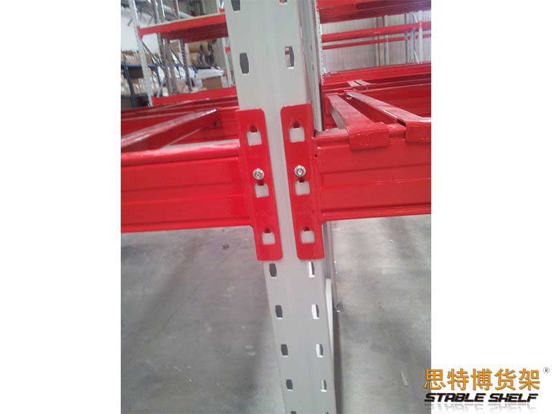 The heavy-duty shelf type uses the most common kind of shelf, which has good practice efficiency.The storage density of fixed racks is low, and the stored items are heavier and must be used with pallets and forklifts, so they are also called pallet racks.When using heavy-duty racks, the size, weight, and number of stacked layers of pallets and goods must be considered to determine the appropriate size of pillars and beams.In addition, in order to improve space utilization, the width of the aisle can be reduced, and the special forklift track form can be used to verticalize the storage space, which becomes a narrow lane type material rack.