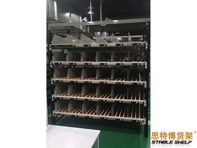 流利式貨架又稱滑移式貨架,采用輥輪鋁合金,鈑金等流利條,利用貨物臺(tái)架的自重,從一邊通道存貨,另一邊通道取貨實(shí)現(xiàn)先進(jìn)先出,存儲(chǔ)方便,以及一次補(bǔ)貨多次取貨。流利架存儲(chǔ)效率高,適合大量貨物的短期存放和揀選。可配電子標(biāo)簽,實(shí)現(xiàn)貨物的輕松管理,常用滑動(dòng)容器有周轉(zhuǎn)箱,零件盒及紙箱,適合大量貨物和短期存放和揀選。廣泛應(yīng)用于配送中心、裝配車間以及出貨頻率較高的倉庫。