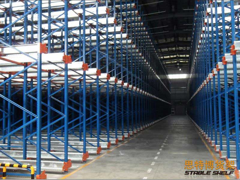 Shuttle shelf is an efficient, high-density, low-cost storage method, compared with through the shelf, the storage capacity is comparable, but safe and reliable, the shelf is not easy to damage; This kind of shelf needs to be compatible with the shuttle car, driven by a rechargeable battery, the shuttle car travels on the track and enters a specially designed shelf tunnel, using lifting plates and positioning sensors, each cargo will be transported to the farthest storage location in the tunnel. Access to goods can be easily operated by the forklift via remote control.