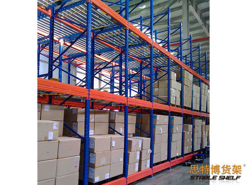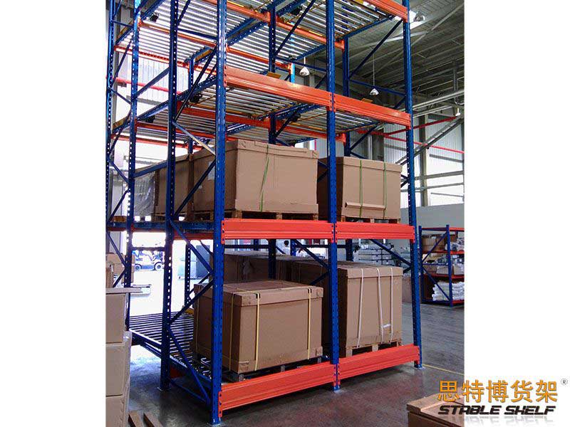 重力式貨架又叫自重力貨架,屬于重型貨架,是由托盤式貨架演變而來的,適用于少品種大批量同類貨物的存儲,空間利用率極高,重力式貨架深度及層數(shù)可按需要而定。