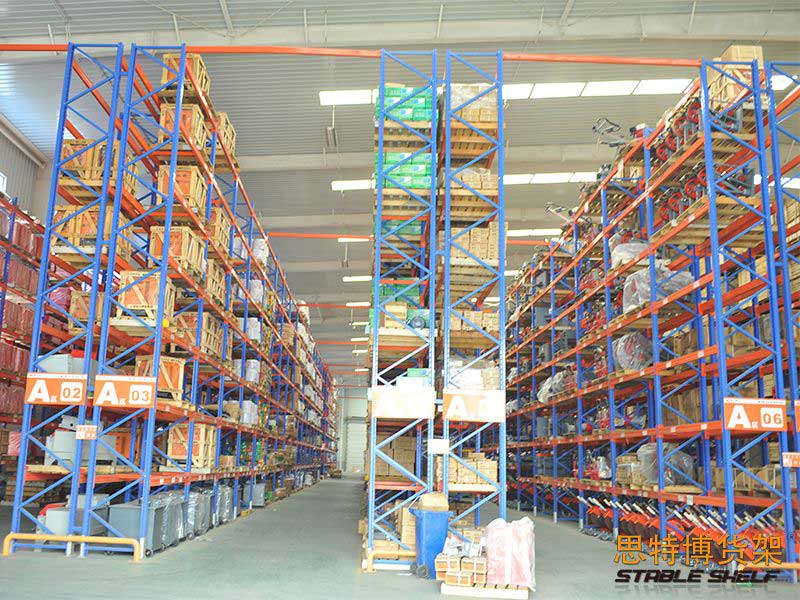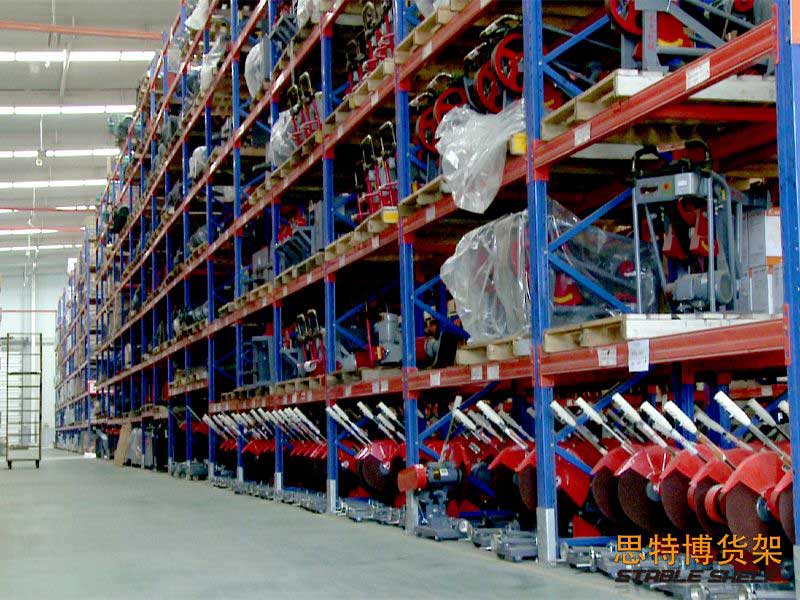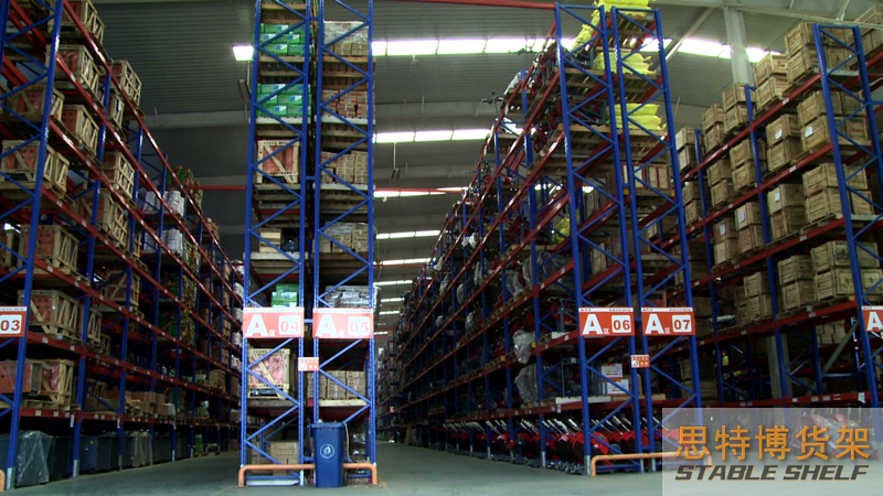 重型貨架是最常用的一種貨架,它具有良好的提取效率。固定架的儲(chǔ)存密度低,儲(chǔ)存的物品較重,必須配合托盤和叉車使用,所以又稱托盤貨架。在使用重型貨架時(shí),必須考慮托盤和貨物的尺寸、重量和堆疊層數(shù),以確定合適的支柱和橫梁尺寸。此外,為提高空間利用率,可減小通道寬度,采用專用堆垛機(jī)的軌道形式,即窄車道式貨架,將存儲(chǔ)空間垂直放置。