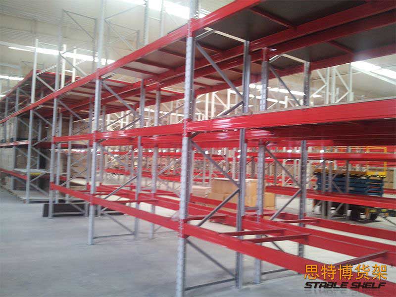重型貨架是最常用的一種貨架,它具有良好的提取效率。固定架的儲存密度低,儲存的物品較重,必須配合托盤和叉車使用,所以又稱托盤貨架。在使用重型貨架時,必須考慮托盤和貨物的尺寸、重量和堆疊層數(shù),以確定合適的支柱和橫梁尺寸。此外,為提高空間利用率,可減小通道寬度,采用專用堆垛機的軌道形式,即窄車道式貨架,將存儲空間垂直放置。