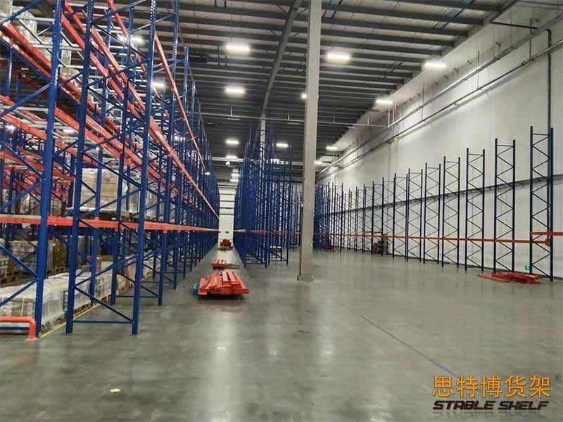 重型貨架是最常用的一種貨架,它具有良好的提取效率。固定架的儲存密度低,儲存的物品較重,必須配合托盤和叉車使用,所以又稱托盤貨架。在使用重型貨架時,必須考慮托盤和貨物的尺寸、重量和堆疊層數(shù),以確定合適的支柱和橫梁尺寸。此外,為提高空間利用率,可減小通道寬度,采用專用堆垛機的軌道形式,即窄車道式貨架,將存儲空間垂直放置。