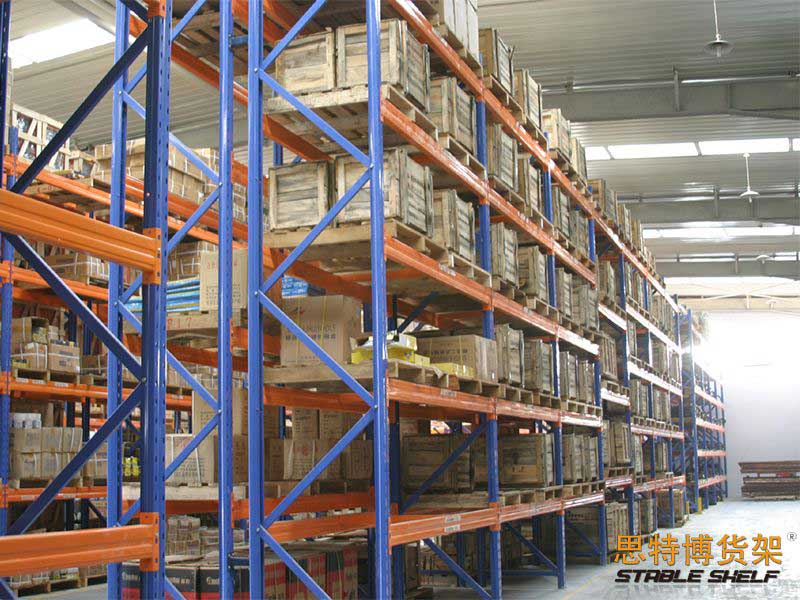 重型貨架是最常用的一種貨架,它具有良好的提取效率。固定架的儲存密度低,儲存的物品較重,必須配合托盤和叉車使用,所以又稱托盤貨架。在使用重型貨架時,必須考慮托盤和貨物的尺寸、重量和堆疊層數(shù),以確定合適的支柱和橫梁尺寸。此外,為提高空間利用率,可減小通道寬度,采用專用堆垛機(jī)的軌道形式,即窄車道式貨架,將存儲空間垂直放置。