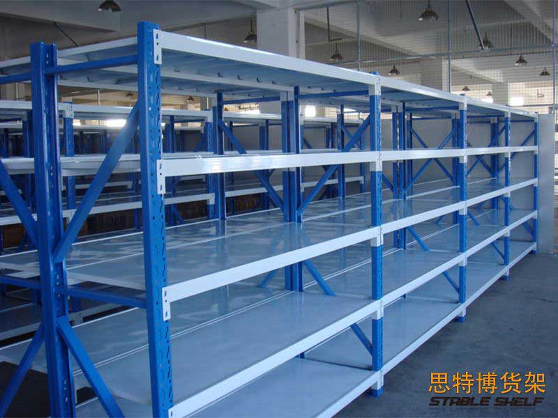 屬于倉儲貨架的一種,擱板貨架類型。是按貨架的承載量來區(qū)分與命名的。按照這一劃分原則中型貨架介于輕型貨架和重型貨架之間,故名中型貨架。通常貨架承載150kg-800kg/層(貨架載荷絕大多數(shù)是以層為單位的承載量計算)。