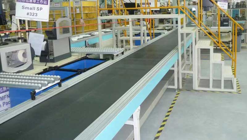 自動分揀線按配送地點(diǎn)的不同運(yùn)送到不同的理貨區(qū)域或配送站臺集中,以便裝車配送